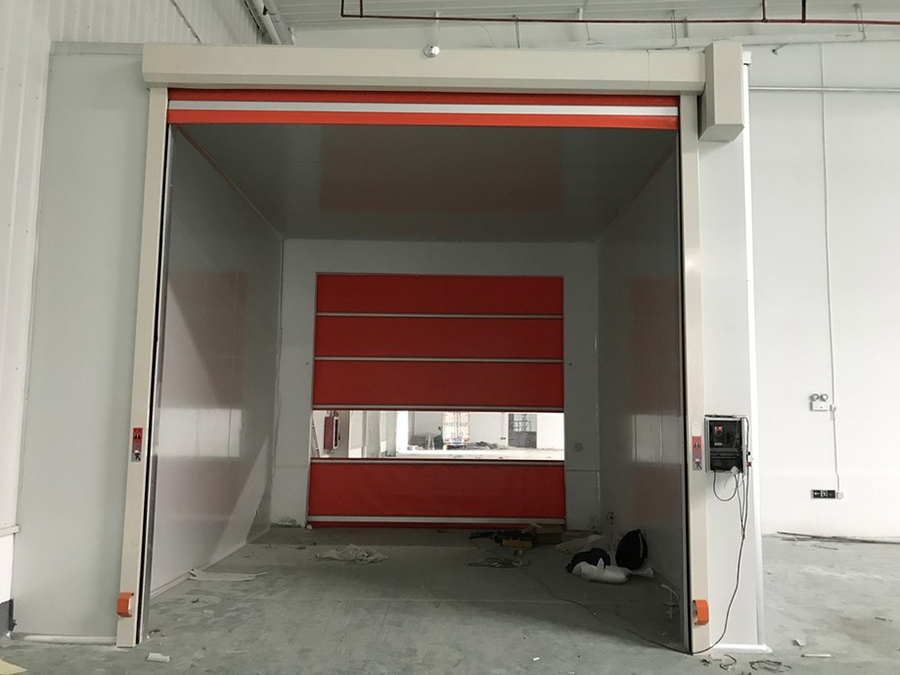 互锁连动快速卷门,适用于极高的卫生环境,一樘门开启另一樘关闭,(也可转换或单独操作使用) 有效防止空气对流,保证室内干净、卫生,防尘、防虫环境需要。